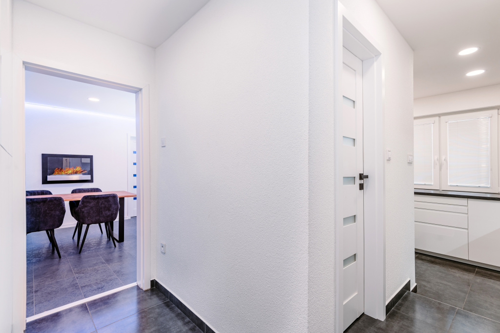 Nová dispozícia & Inžiniering: Zmenená dispozícia jadra pre maximálne využitie priestoru. Samozrejmosťou sú nové rozvody elektriny, vody, odpadu, kúrenia ako aj zavedená prípojka na optický internet.